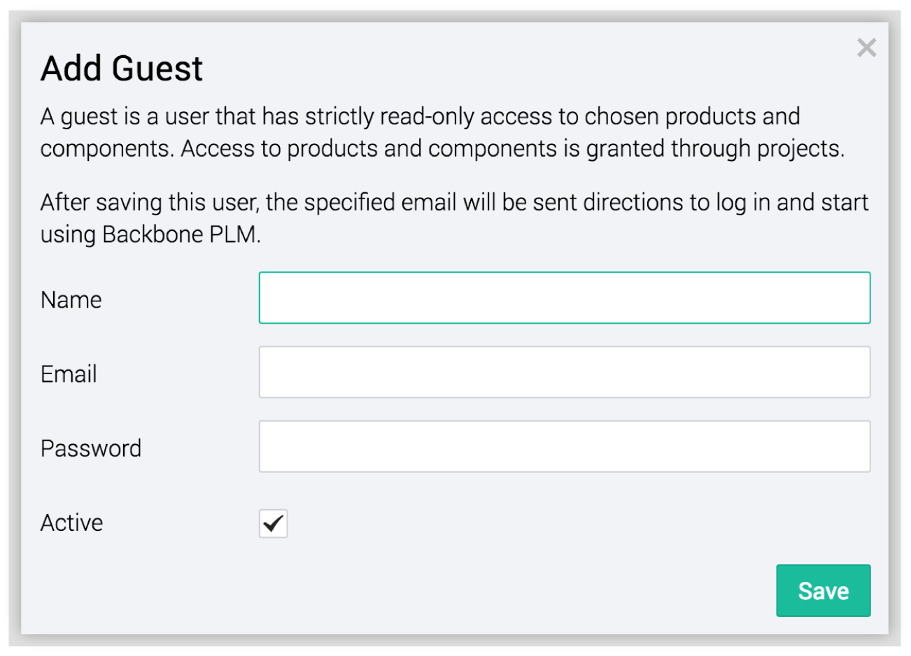 Here, you will be able to change the name, email, and password required of the guest user. To deactivate a user, simply click the checkbox labeled "Active" at the bottom of the menu.