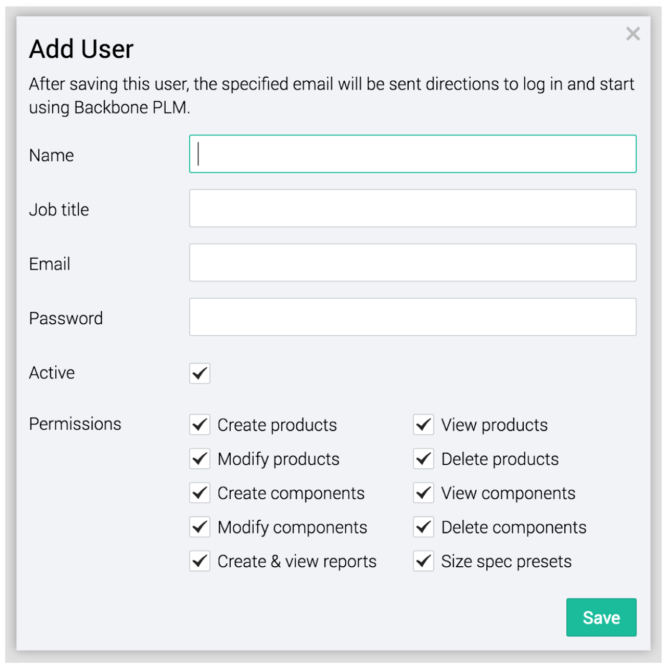 Here you will be able to add a name, job title, email, password, as well as determine the permissions of the user.